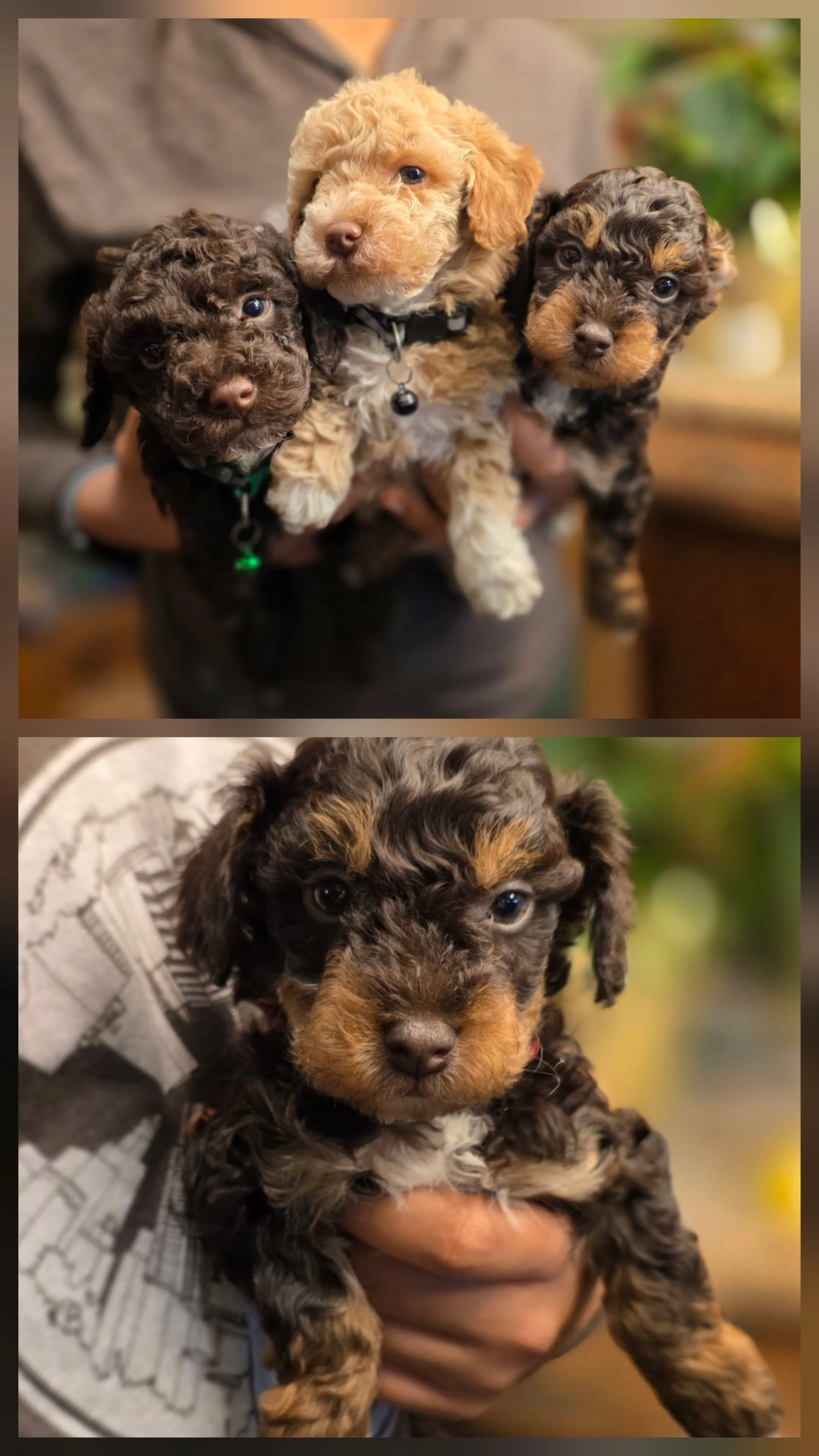 Have two males: one chocolate and one apricot, and one chocolate phantom with white female available. Should get around 10 to 12 pounds as adults. Ready now Female $2500, Males $2200.